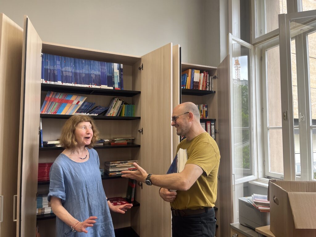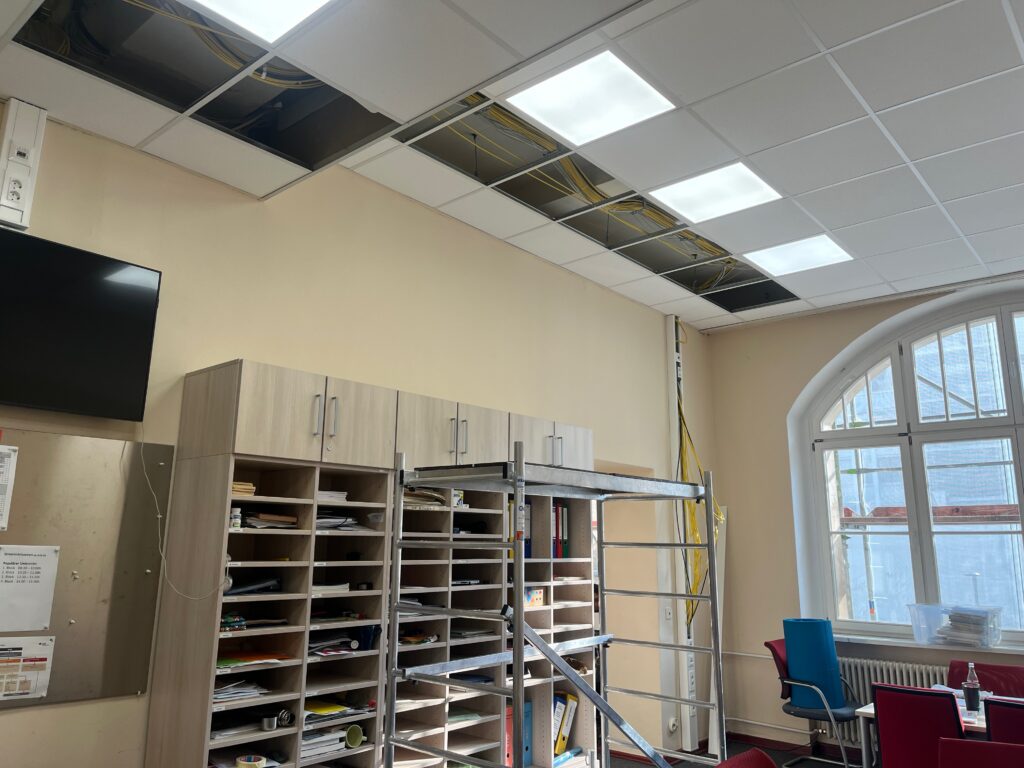 Inzwischen ist unglaublich viel passiert, digitale Infrastruktur, Kabel, Steckdosen und Leitungen wurden verlegt, Smartboards installiert, gemeinsame Konferenzen organisiert und an den letzten zwei Schultagen vor den Sommerferien wurden etwa 500 Kisten, Mobiliar, Instrumente und Technik zum Kolleg Schöneberg gebracht. Wir sind noch immer am Sortieren und Einräumen.