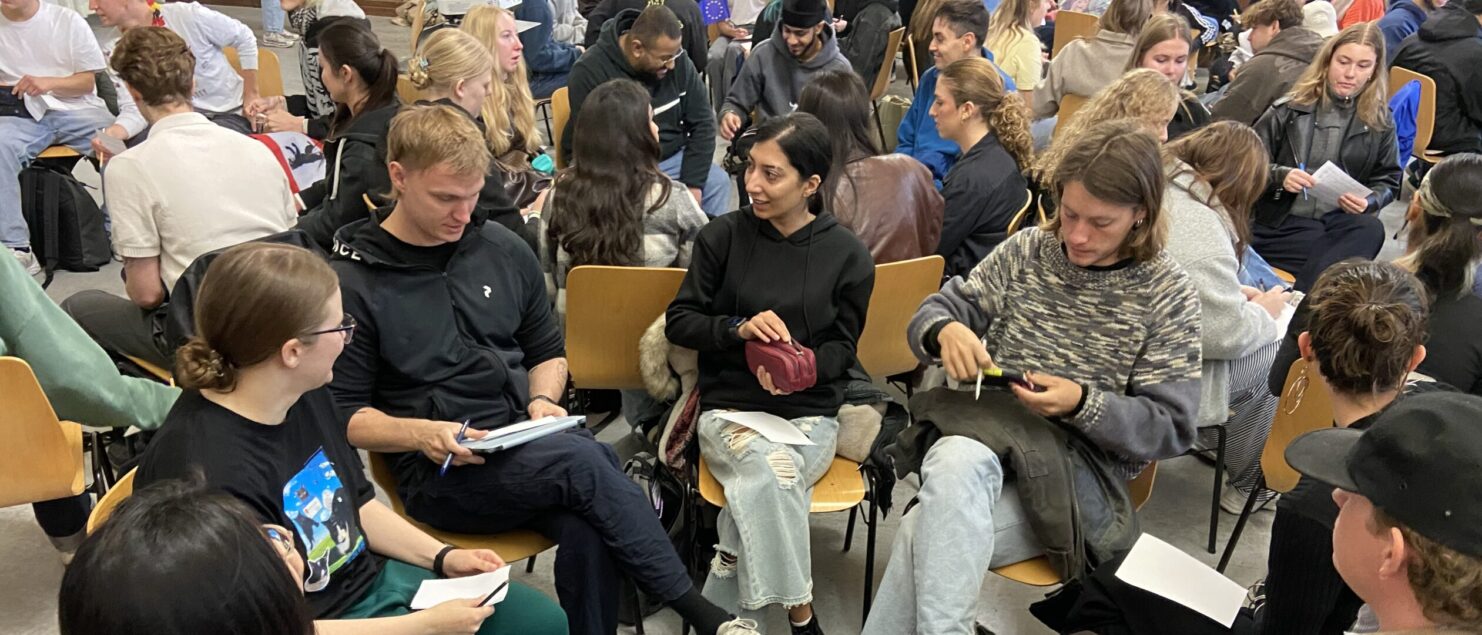 Im Oktober kamen 50 Menschen vom Københavns Voksenuddannelsescenter (KVUC) aus Dänemark für einen Vormittag an unser Kolleg. Es gab Musik, ein Quiz mit Preisen für alle, viele spannende Gespräche, Sprachenaustausch und es entstanden kreative Poster rund um Kultur & Nachhaltigkeit. Doch sehen Sie selbst!