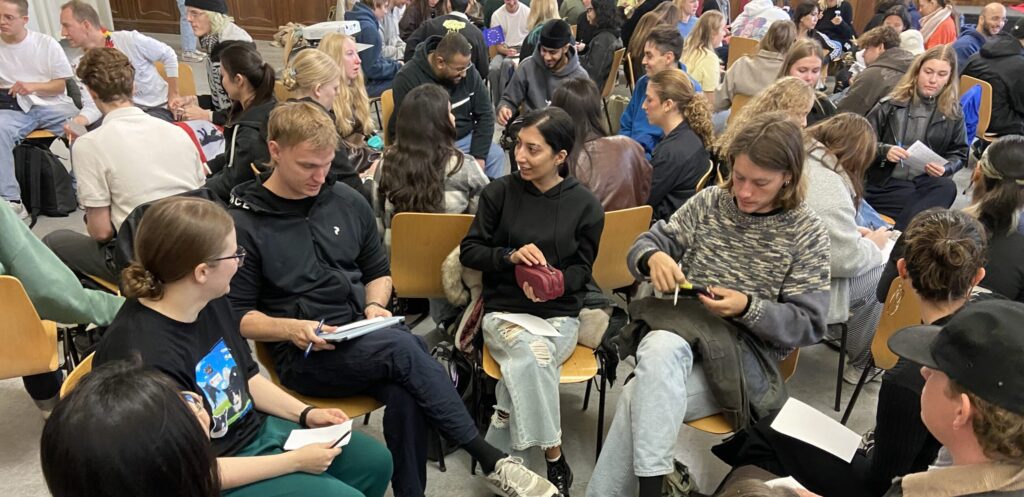 Im Oktober kamen 50 Menschen vom Københavns Voksenuddannelsescenter (KVUC) aus Dänemark für einen Vormittag an unser Kolleg. Es gab Musik, ein Quiz mit Preisen für alle, viele spannende Gespräche, Sprachenaustausch und es entstanden kreative Poster rund um Kultur & Nachhaltigkeit. Doch sehen Sie selbst!