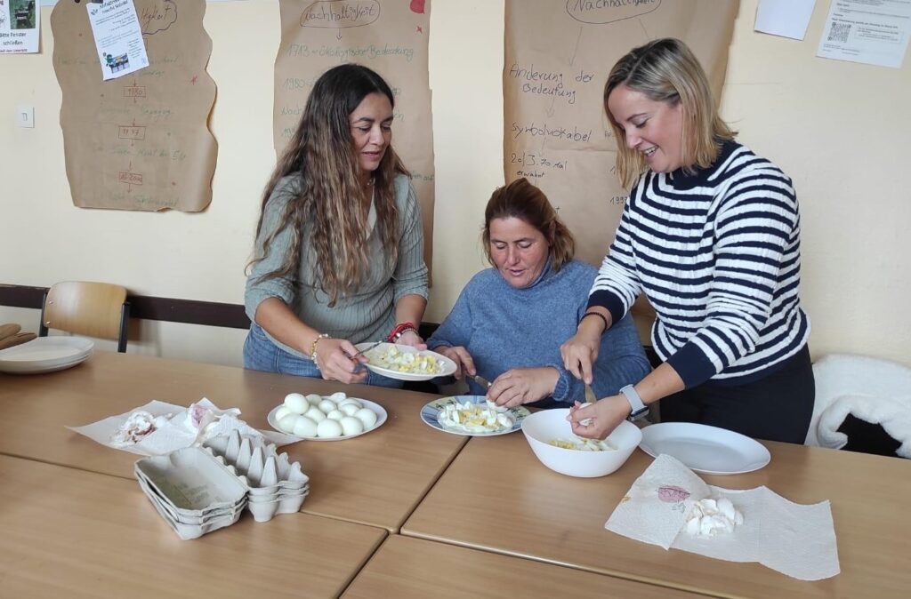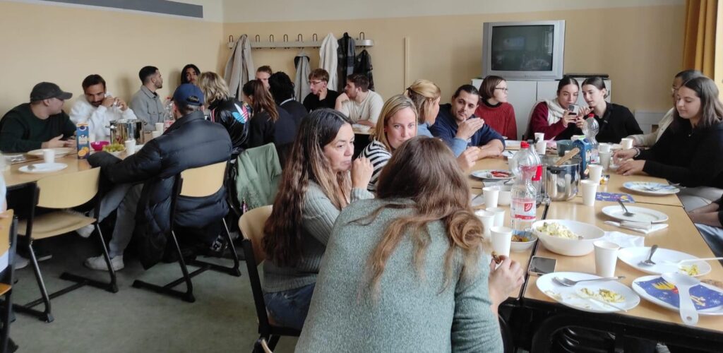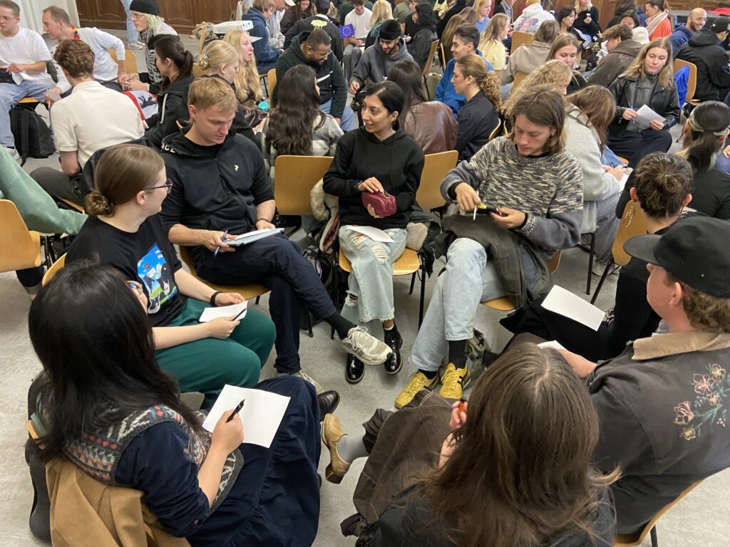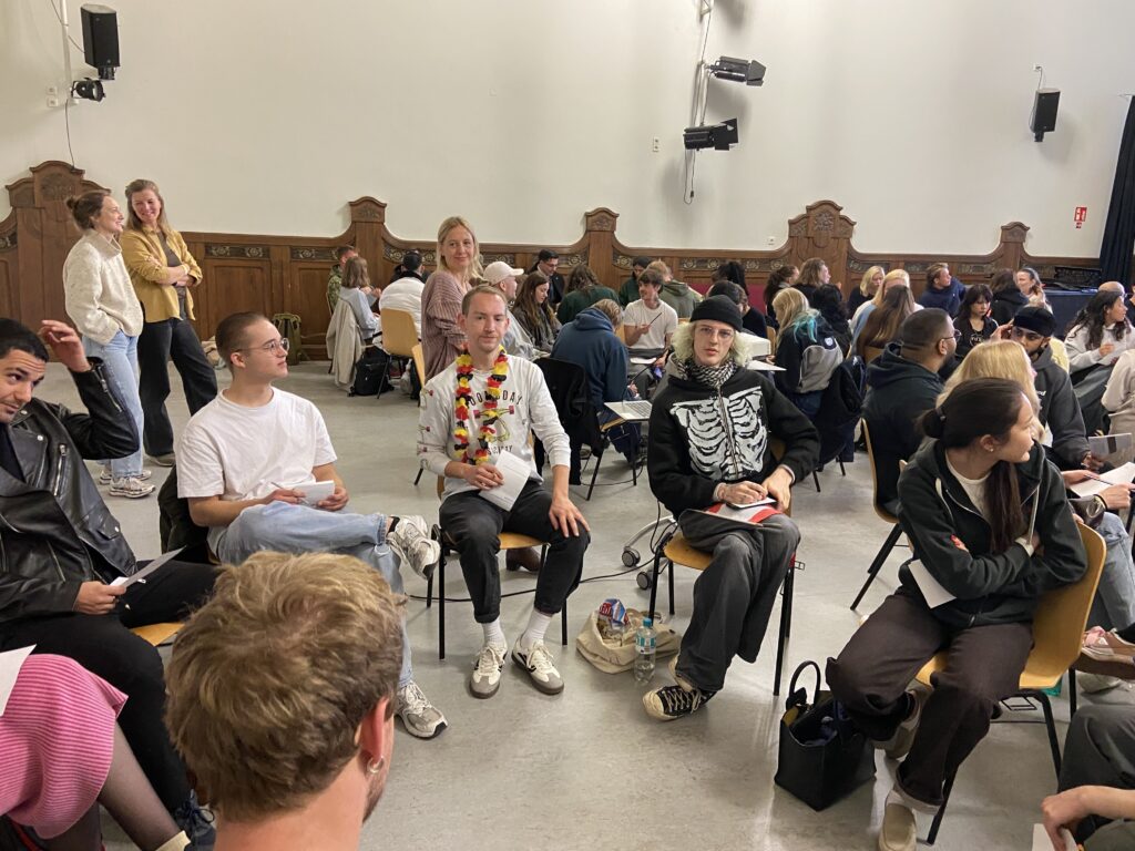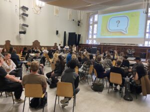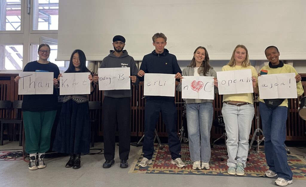 Im Oktober kamen 50 Menschen aus Dänemark (KVUC) für einen Vormittag an unser Kolleg. Es gab Musik, ein Quiz mit Preisen für alle, viele spannende Gespräche, Sprachenaustausch und es entstanden kreative Poster rund um Kultur & Nachhaltigkeit. Doch sehen Sie selbst!