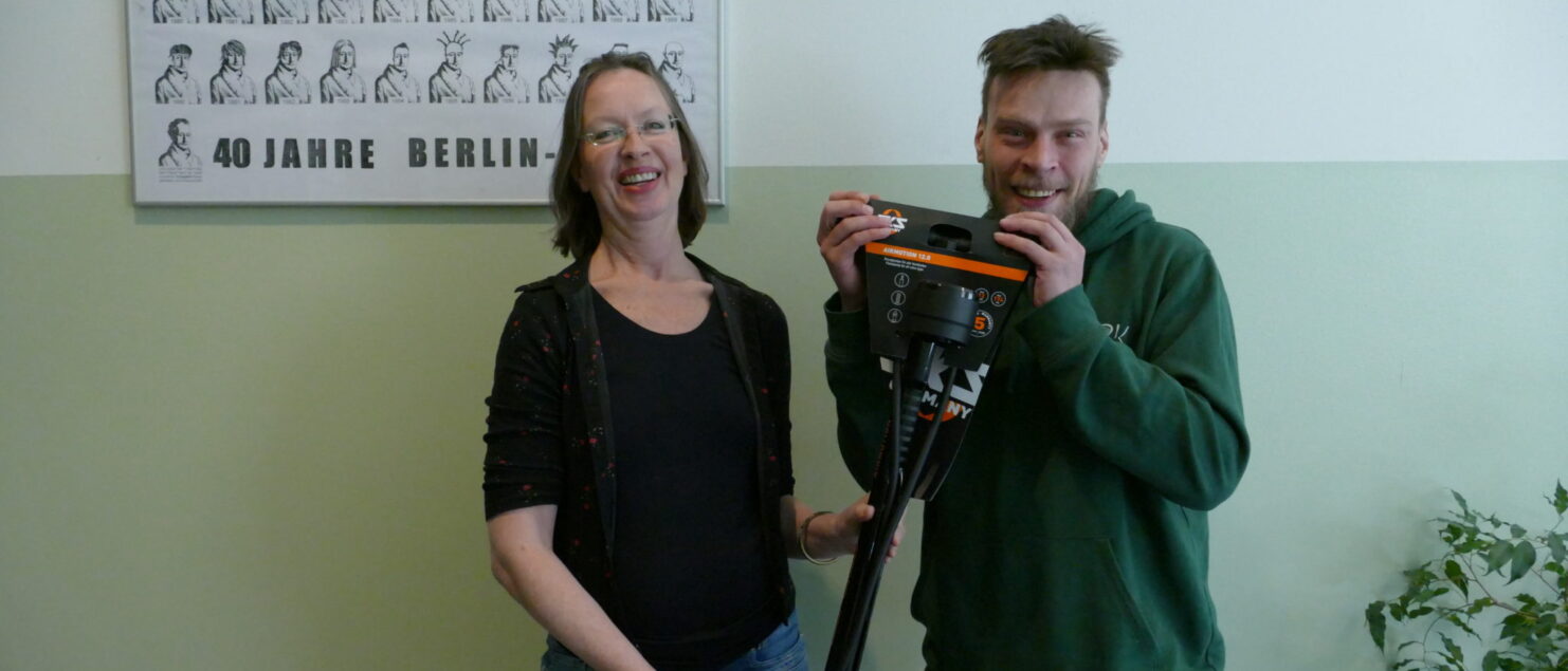Zunächst hat uns der Förderverein eine stabile Luftpumpe finanziert, die jederzeit erreichbar ist. Mittlerweile haben wir eine kleine Reparaturwerkstatt (fahrrad@kolleg.berlin), die Kollegiat:innen jahrgangsübergreifend organisieren.